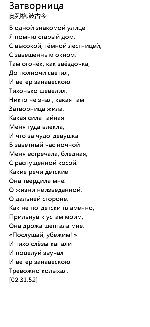 Затворница жила, |