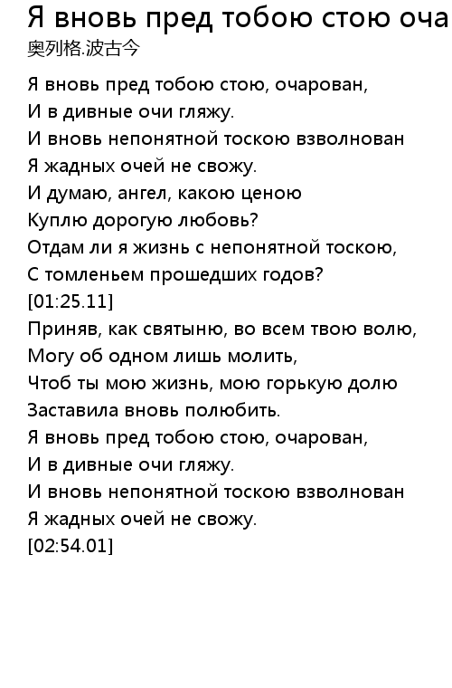 Я вновь пред тобою стою, очарован, |