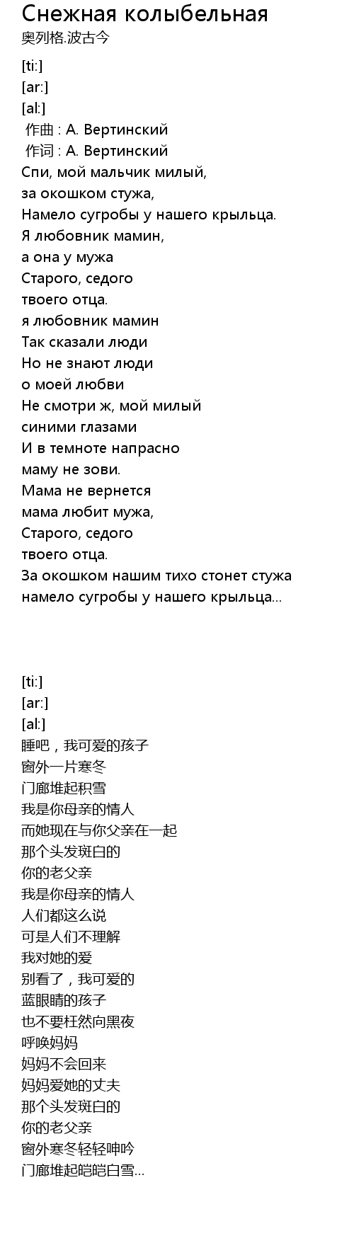 | [00:01.00] | 作词 : А. Вертинский |