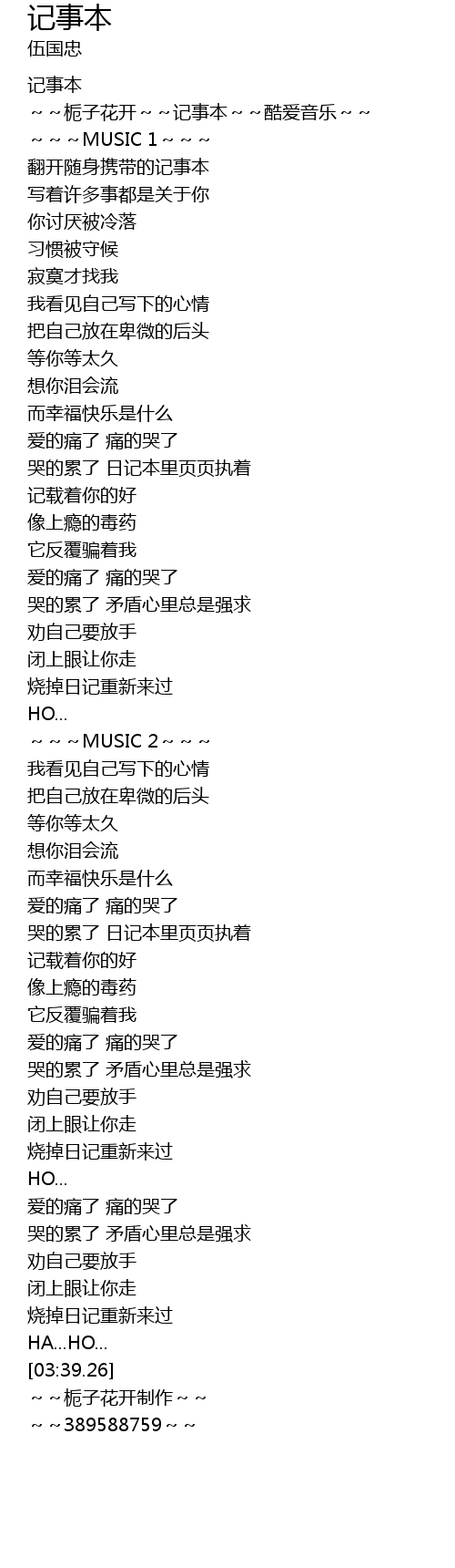 | [00:13.62] | ~~栀子花开~~记事本~~酷爱音乐~~ |