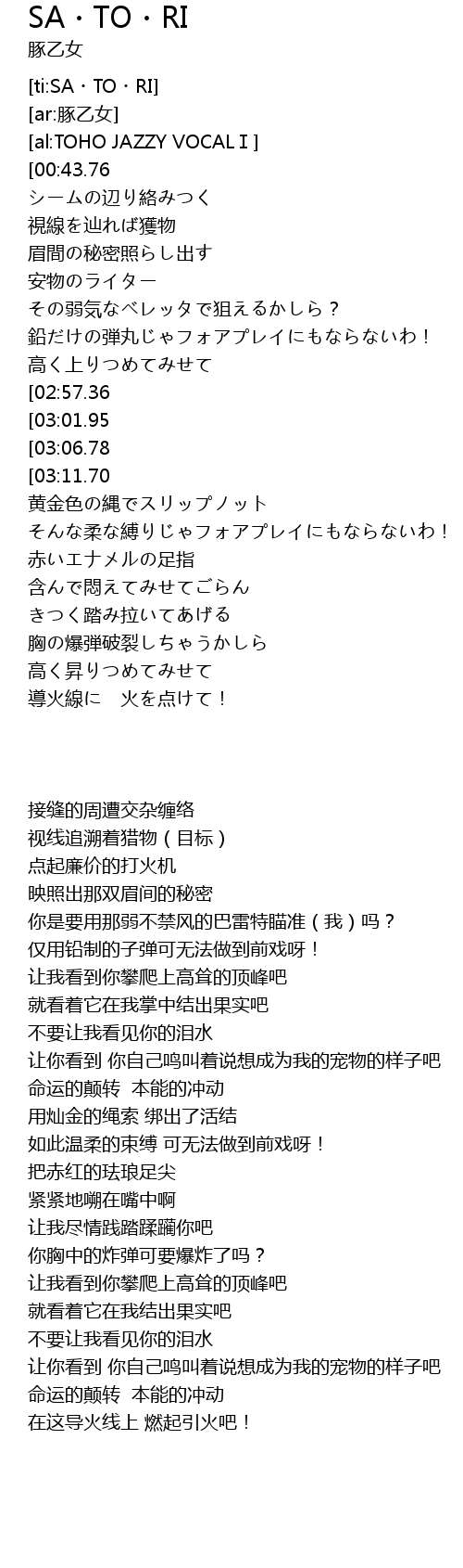 | [02:10.74] | 黄金色の縄でスリップノット |