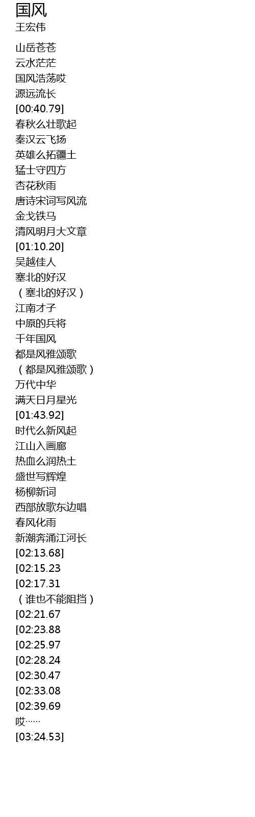 | [02:56.71][02:25.97] | 千年国风 |