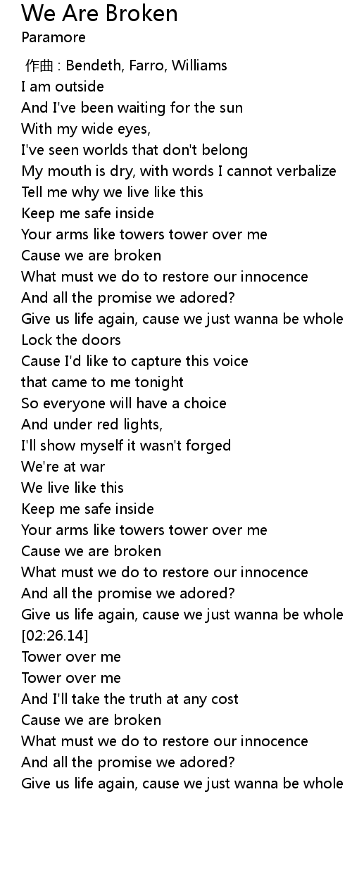 | [02:58.31] | Cause we are broken |