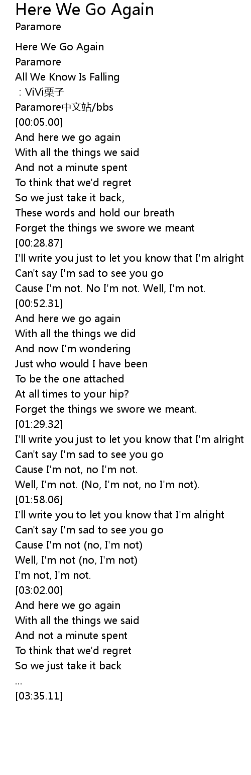 | [00:00.00] | Here We Go Again |