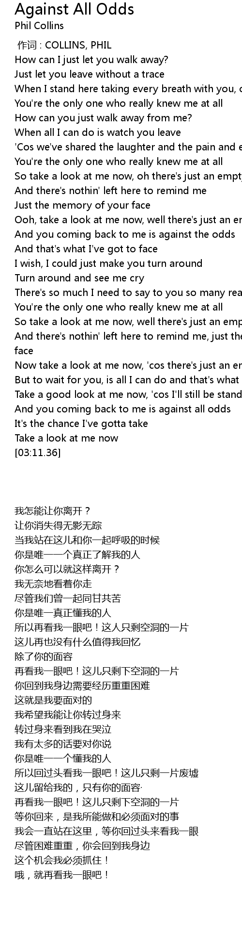 | [00:00.00] | 作词 : COLLINS, PHIL |