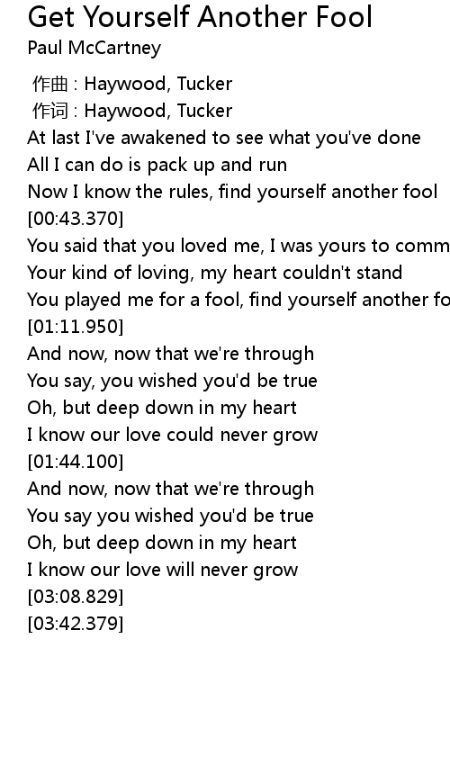 | [01:04.720] | You played me for a fool, find yourself another fool |