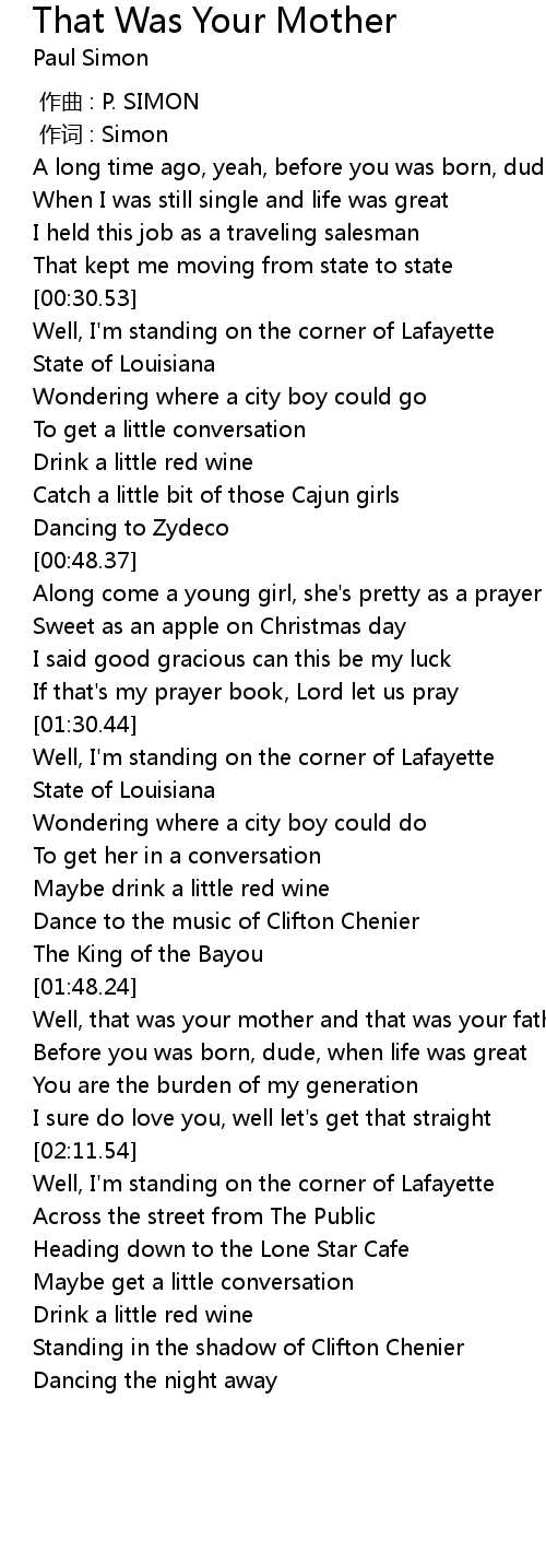 | [00:00.00] | 作曲 : P. SIMON |