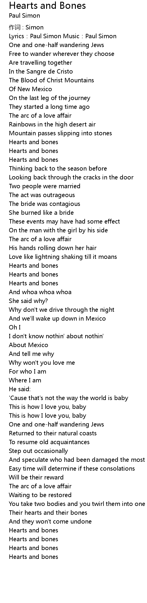 | Lyrics:Paul Simon Music:Paul Simon | |