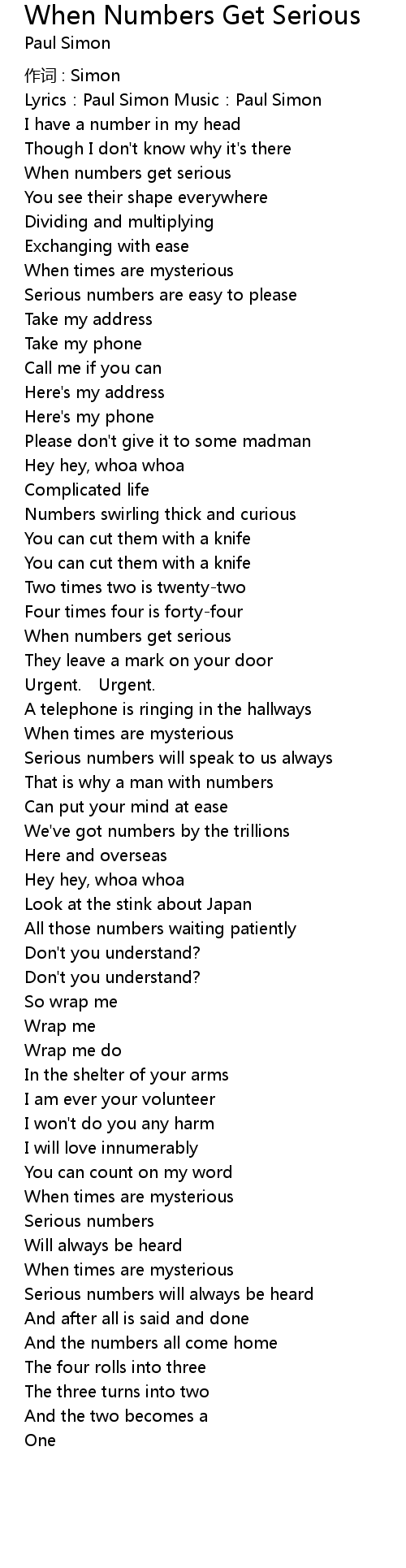 | Lyrics:Paul Simon Music:Paul Simon | |