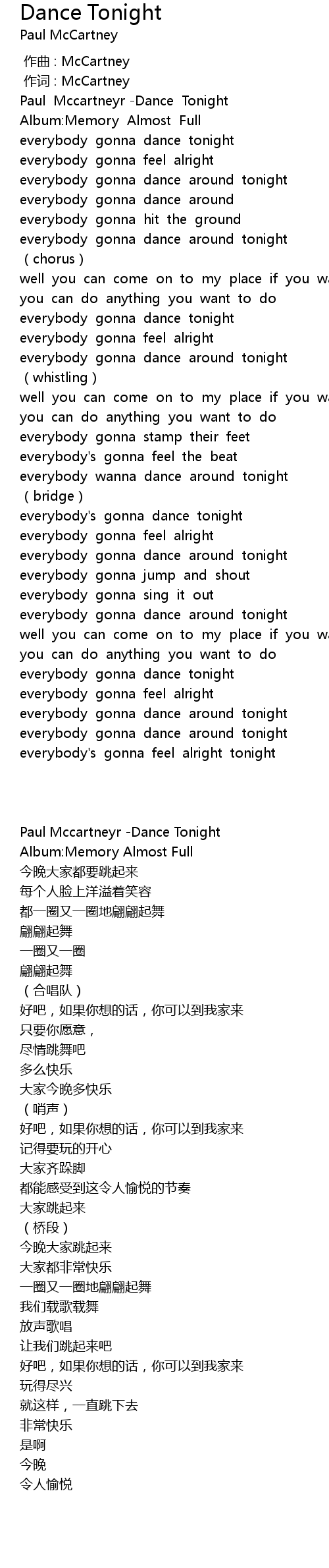 | [00:00.84] | Paul Mccartneyr -Dance Tonight |