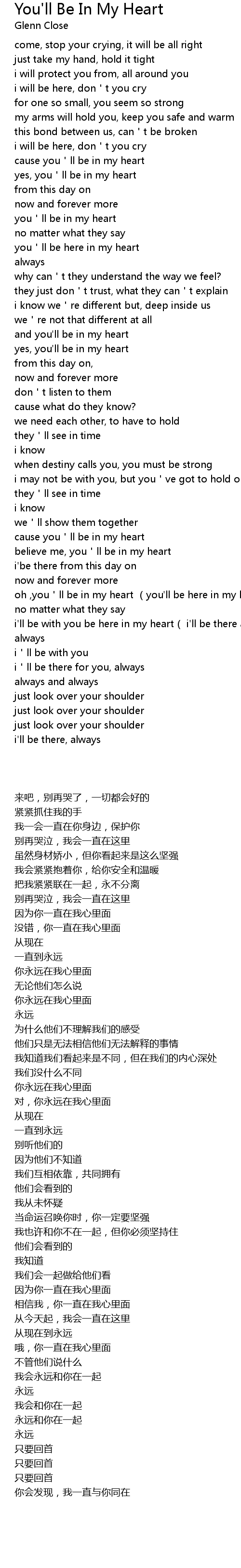 | [03:20.00] | i' ll be with you be here in my heart i' ll be there always |