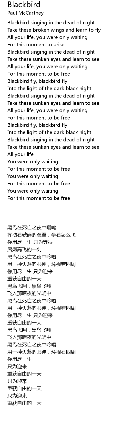 Blackbird singing in the dead of night |