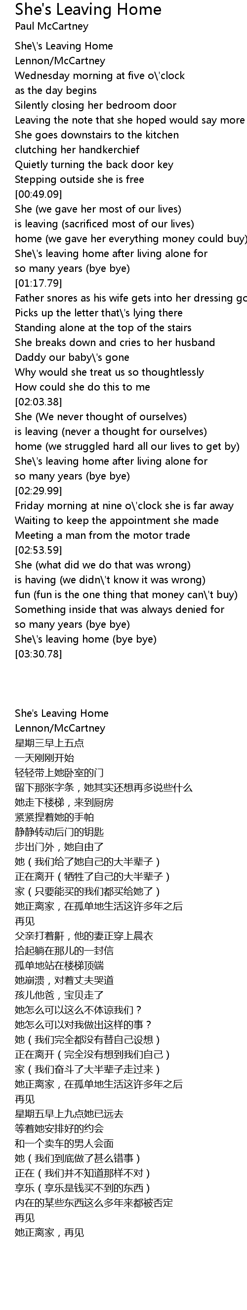 She\'s Leaving Home |