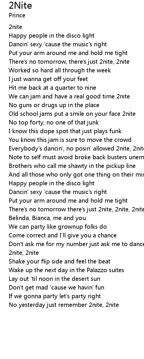 There's no tomorrow, there's just 2nite, 2nite |