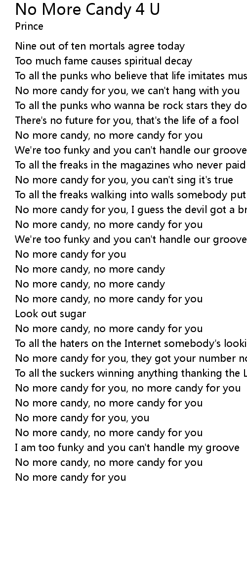 No more candy, no more candy |