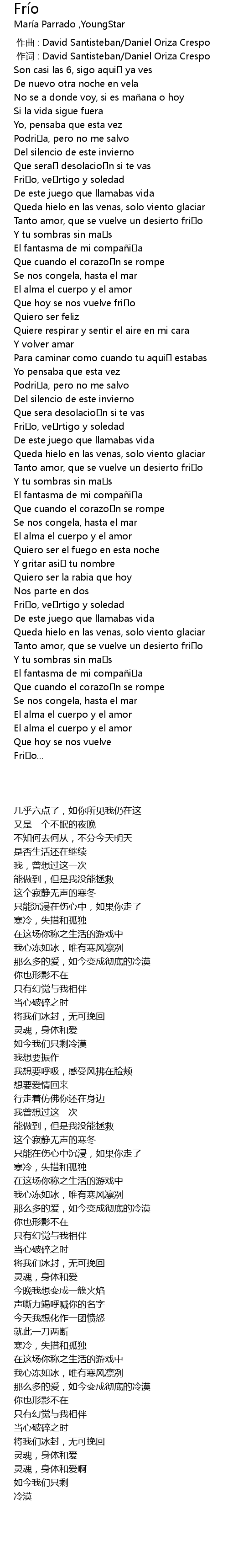 | [00:01.00] | 作词 : David Santisteban/Daniel Oriza Crespo |
