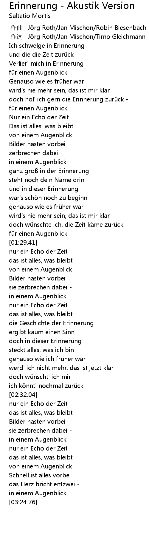 | [00:06.10] | Ich schwelge in Erinnerung |