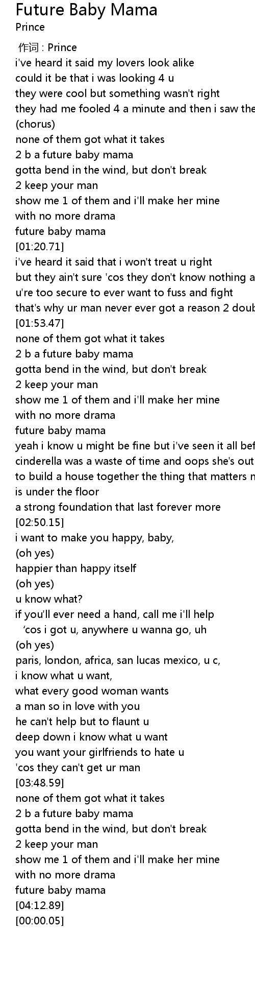| [03:52.18] | 2 b a future baby mama |