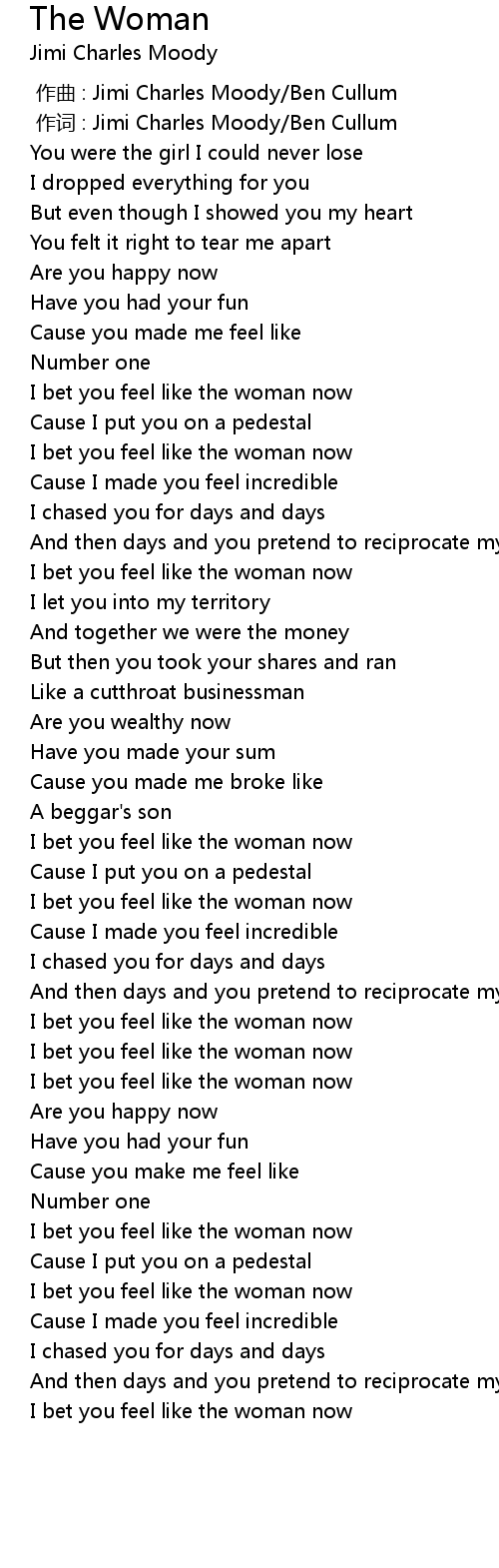 | [00:01.00] | zuò cí : Jimi Charles Moody Ben Cullum |