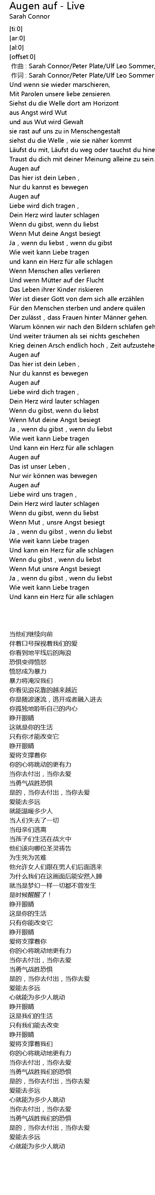 | [00:01.00] | zuò cí : Sarah Connor Peter Plate Ulf Leo Sommer |