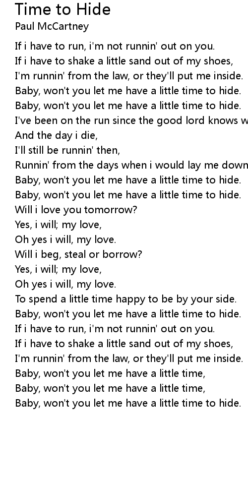 Baby, won't you let me have a little time to hide. |