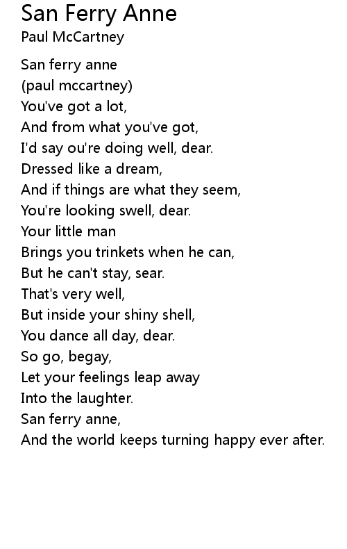 | Song | San Ferry Anne |