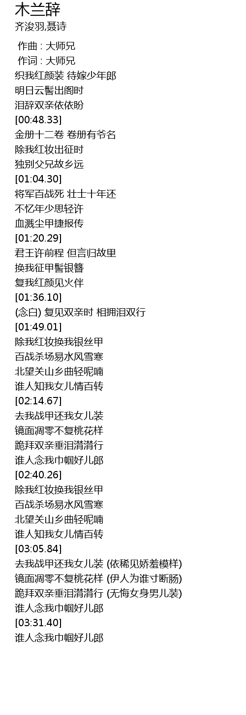 | [02:33.86] | 谁人念我巾帼好儿郎 |