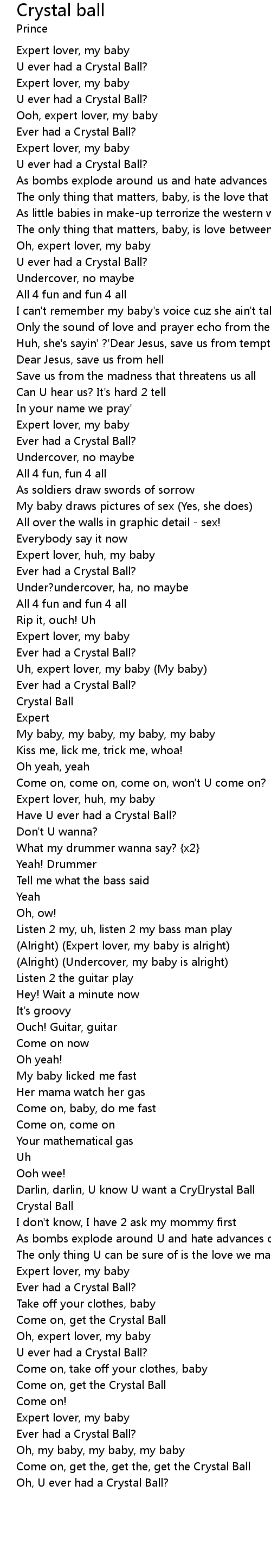 | Darlin, darlin, U know U want a Cry rystal Ball | |