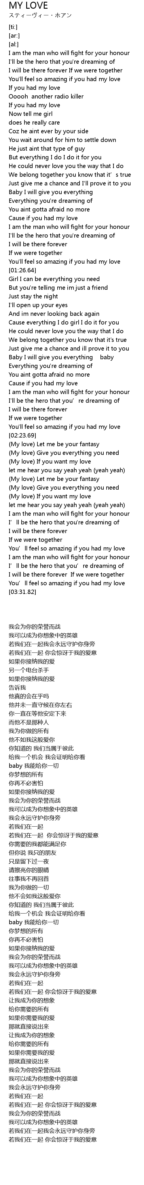 | [02:30.81] | (My love) Give you everything you need |