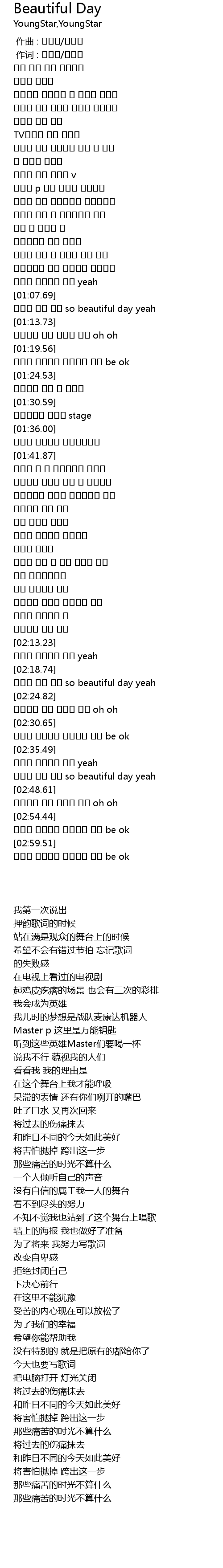 | [02:19.74] | 어제와 다른 오늘 so beautiful day yeah |