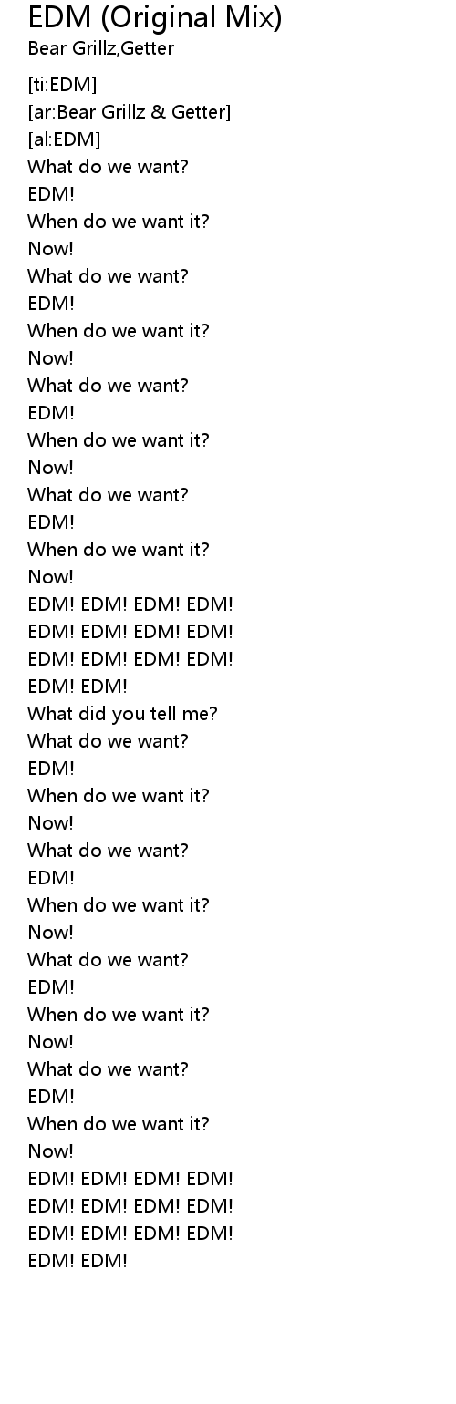 | [01:58.39] | EDM! EDM! EDM! EDM! |