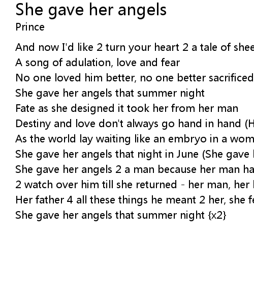 She gave her angels that summer night {x2} |