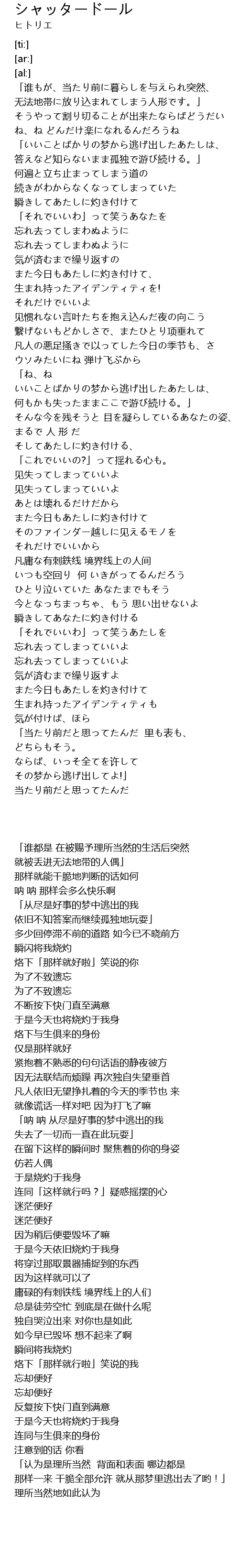 | Song | シャッタードール |