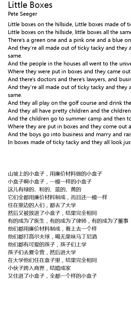 Little boxes on the hillside, Little boxes made of tickytacky |