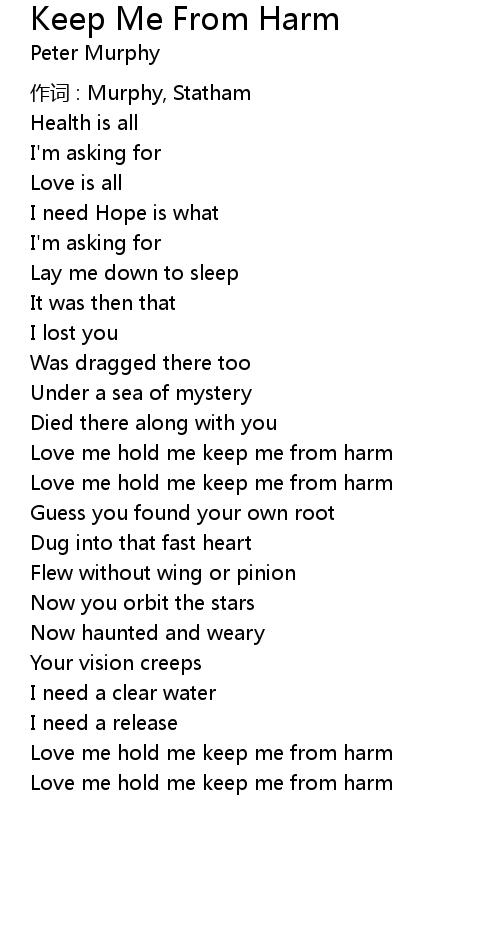 | Love me hold me keep me from harm | |