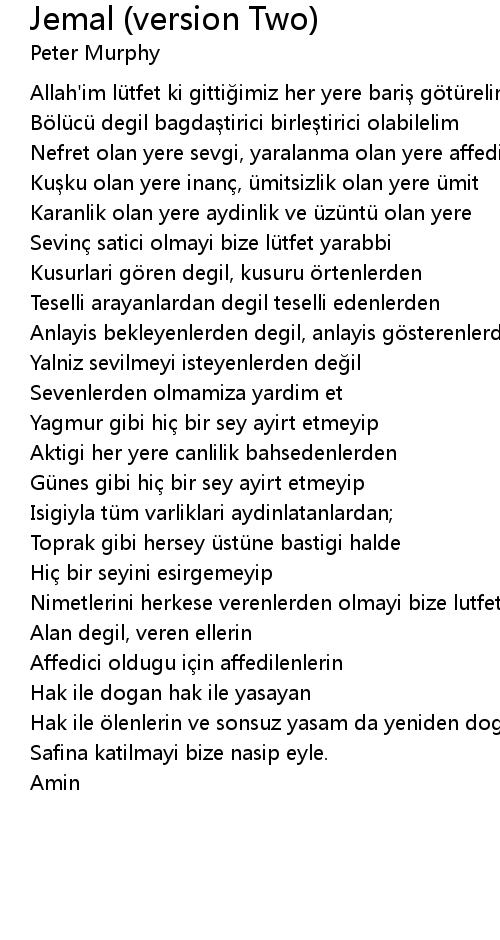 | Allah'im lütfet ki gittiğimiz her yere bariş götürelim | |