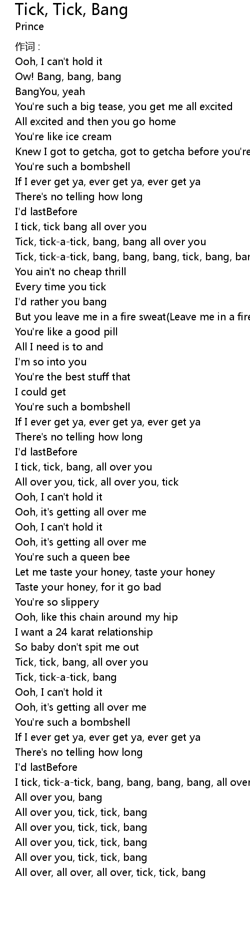 | I tick, tick-a-tick, bang, bang, bang, bang, all over you | |