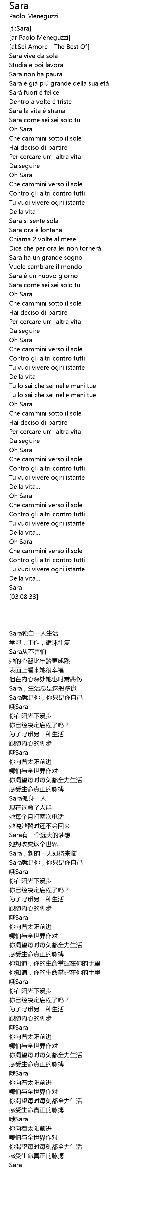 | [00:23.00] | Sara la vita e strana |