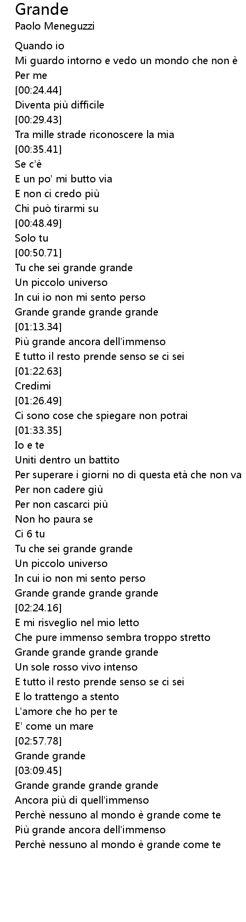 | [03:22.40] | Perchè nessuno al mondo è grande come te |