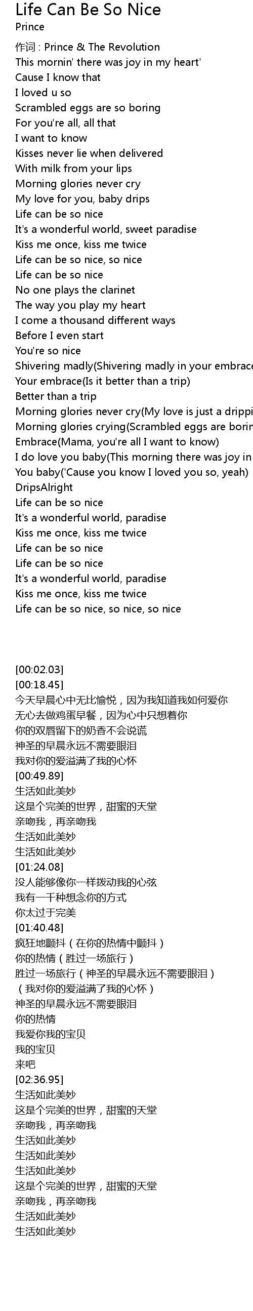 | 作词 : Prince & The Revolution | |