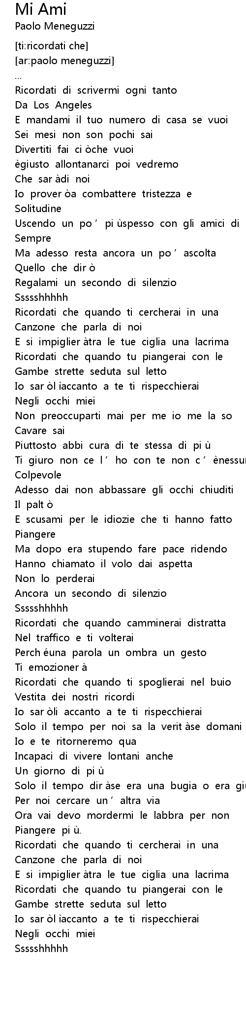 | [00:13.13] | Ricordati di scrivermi ogni tanto |