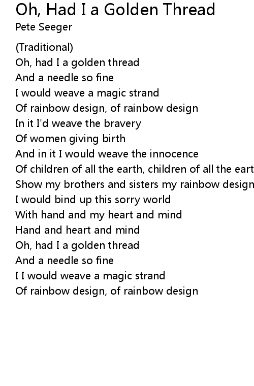 Oh, had I a golden thread |