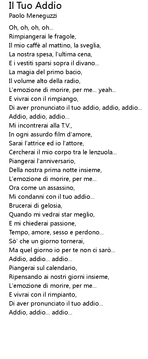| Di aver pronunciato il tuo addio, addio, addio... | |