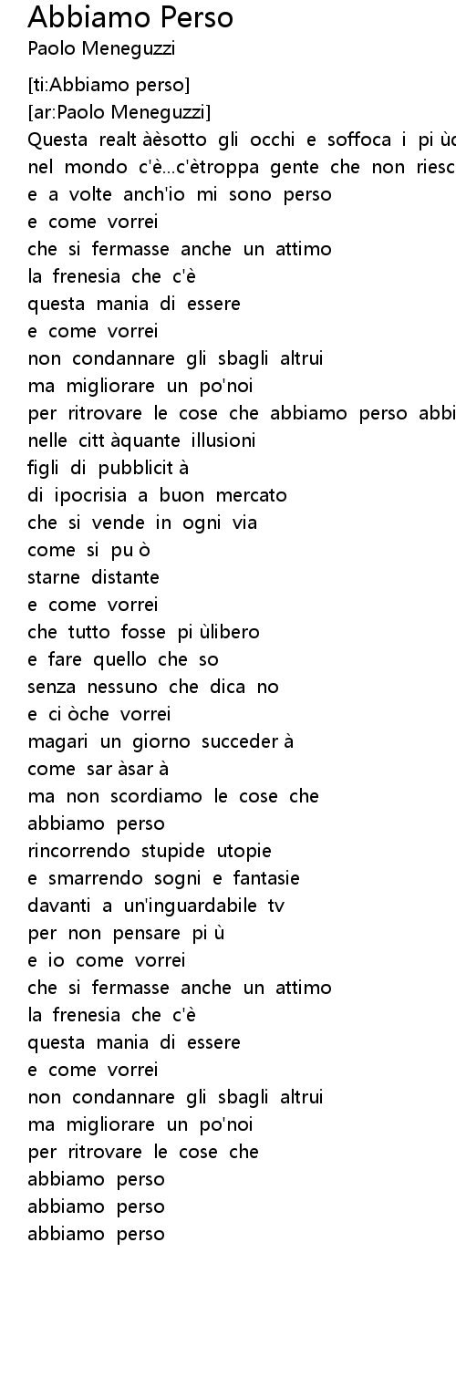 | [00:31.11] | e a volte anch' io mi sono perso |