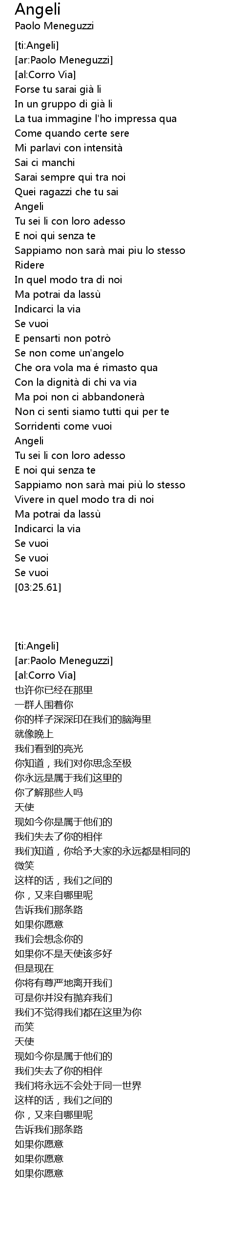 | [02:47.86] | Sappiamo non sara mai piu lo stesso |