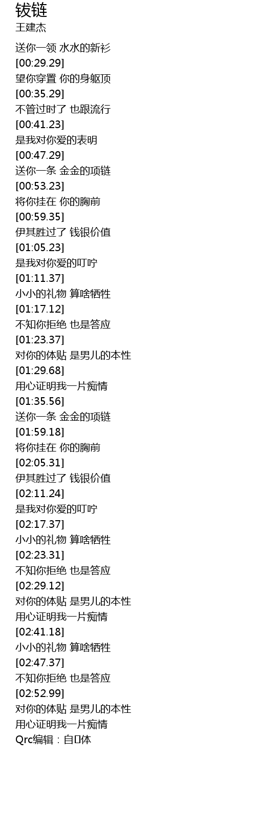 | [01:55.12] | 送你一条 金金的项链 |