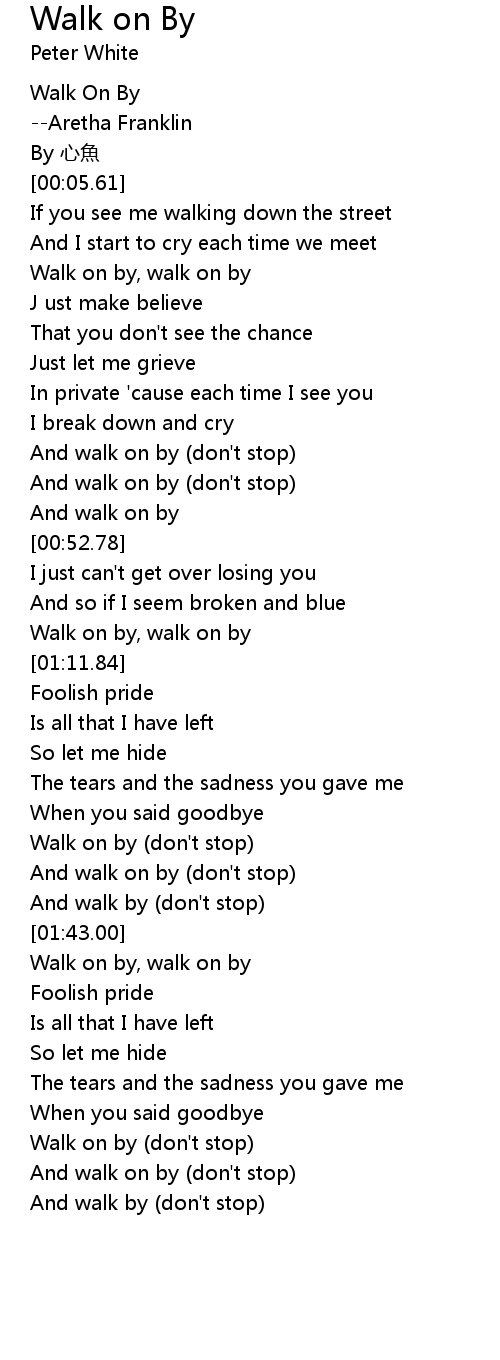 | [02:22.51] | Walk on by (don't stop) |