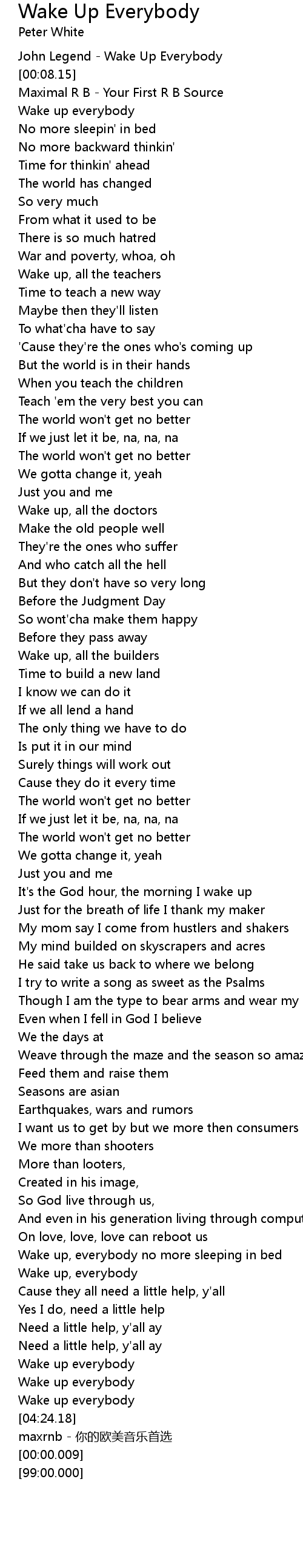 | [00:02.03] | John Legend - Wake Up Everybody |