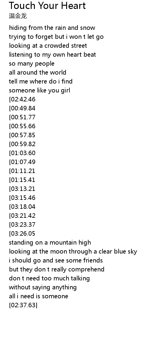 | [00:47.91][02:42.46] | take me to your heart |