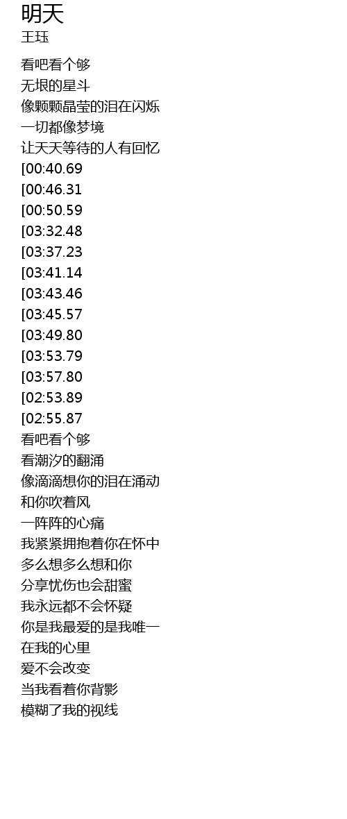 | [04:26.91][03:49.80][02:42.58][01:15.14] | ming tian ming tian |